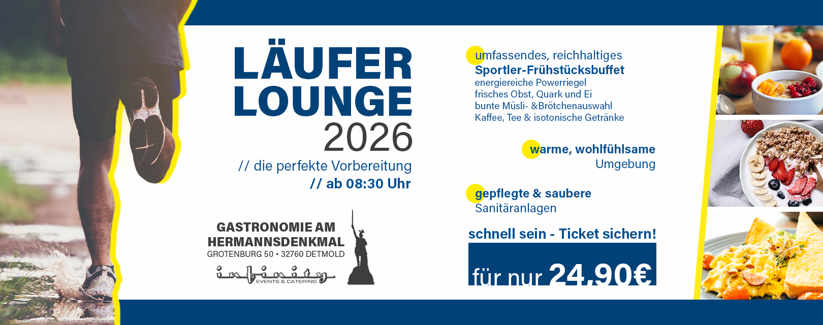 Auch in diesem Jahr bietet Infinity Events & Catering wieder eine Läufer-Lounge in der Gastronomie am Hermannsdenkmal an.